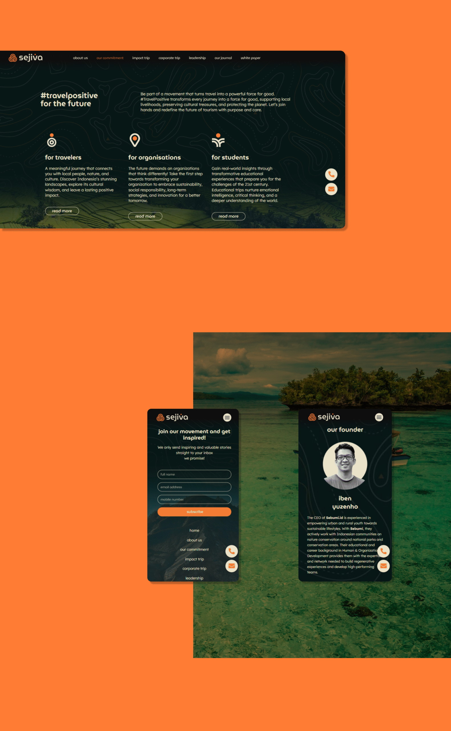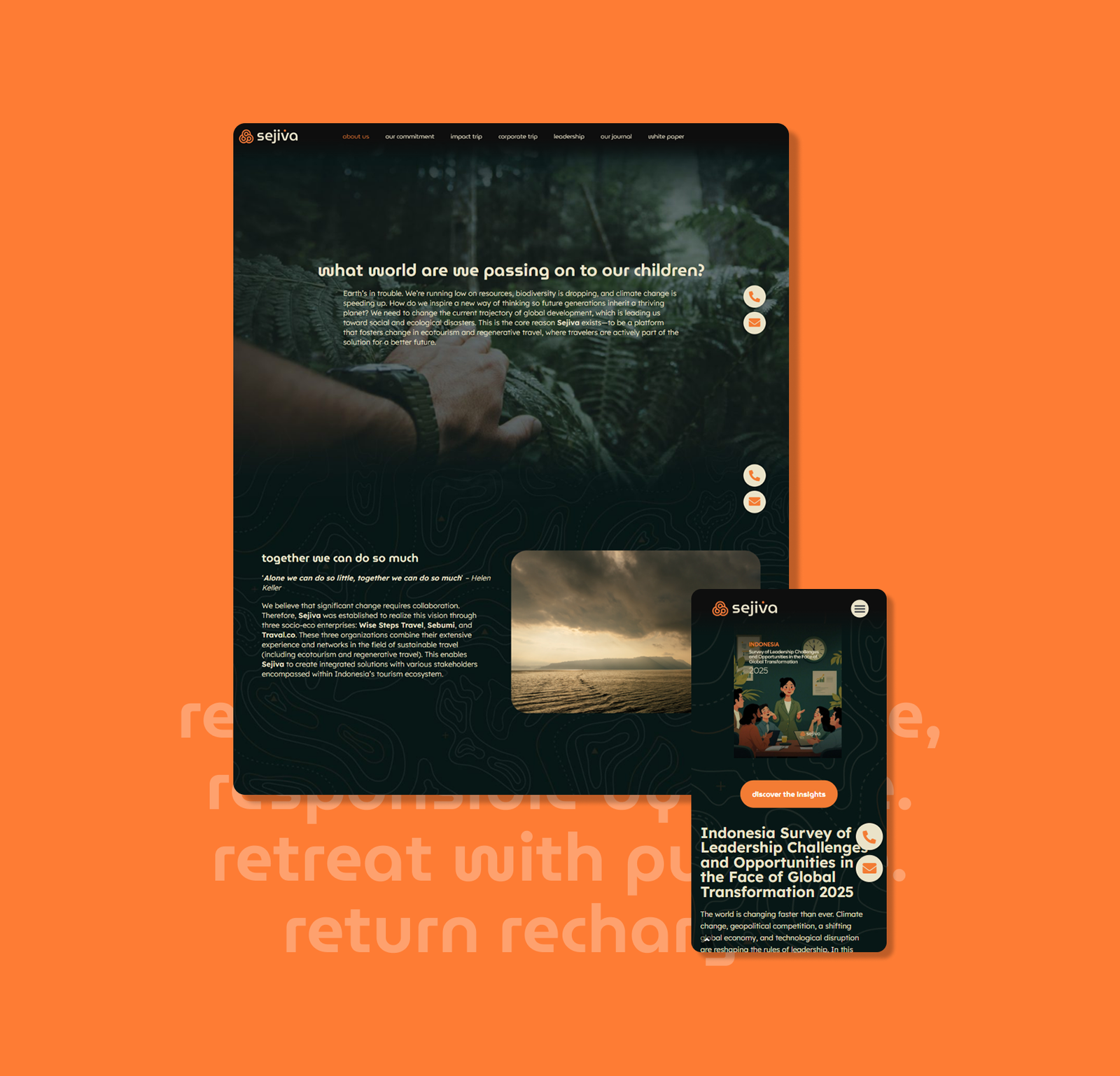 Sejiva.id zet zich in om conventioneel reizen te doorbreken door het om te vormen tot een krachtige kracht voor het goede. Wij cureren en faciliteren regeneratieve reiservaringen die verder gaan dan minimale impact, en reizigers in staat stellen actief bij te dragen aan het herstel van natuurlijke ecosystemen, het behoud van biodiversiteit en de versterking van lokale gemeenschappen.